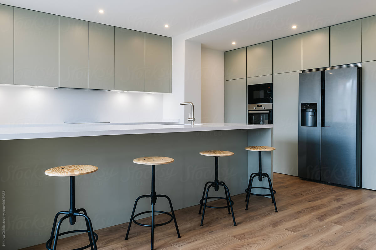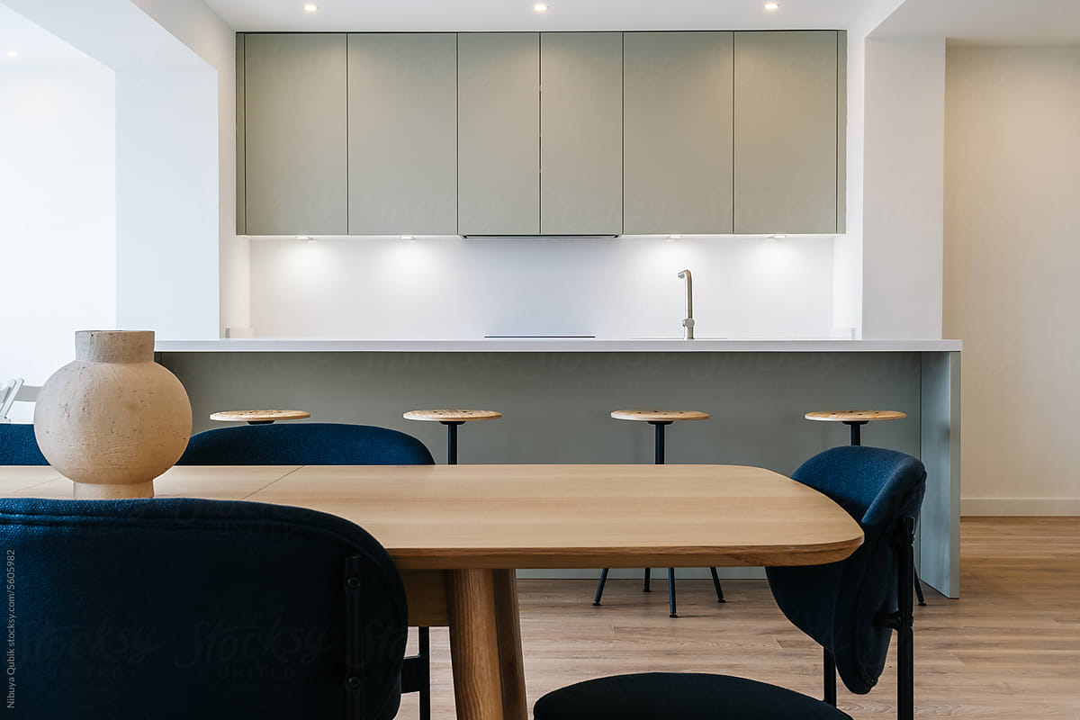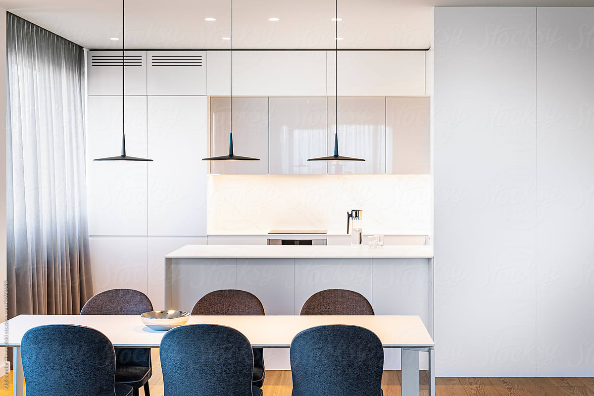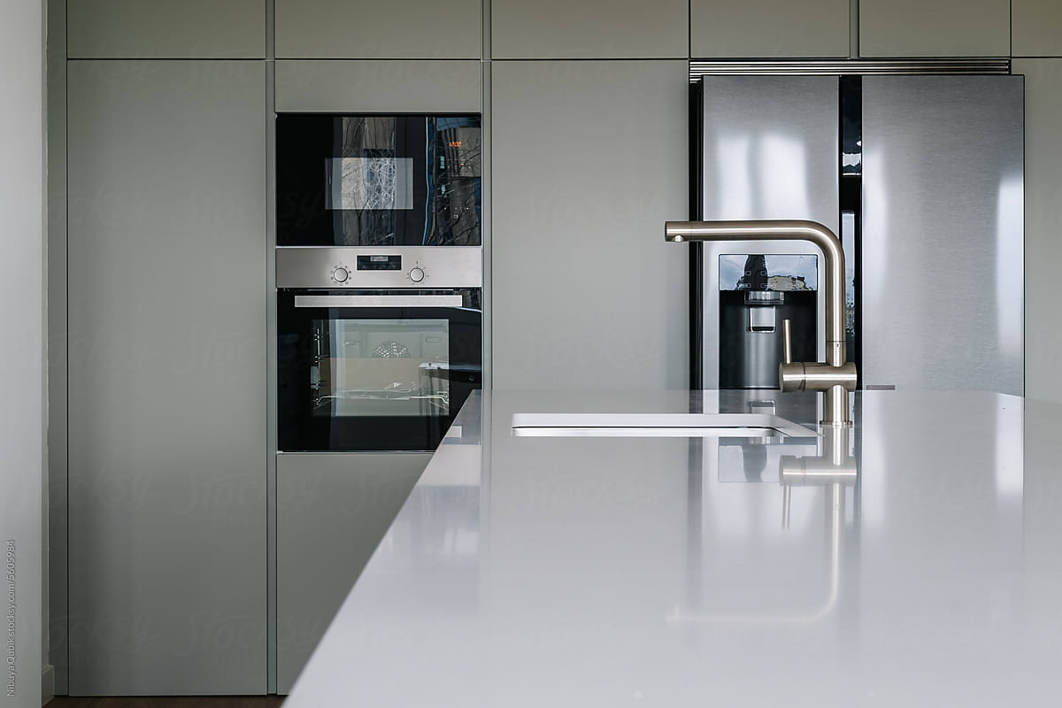 A sleek and minimalist kitchen design emphasizing efficiency and modern aesthetics.